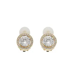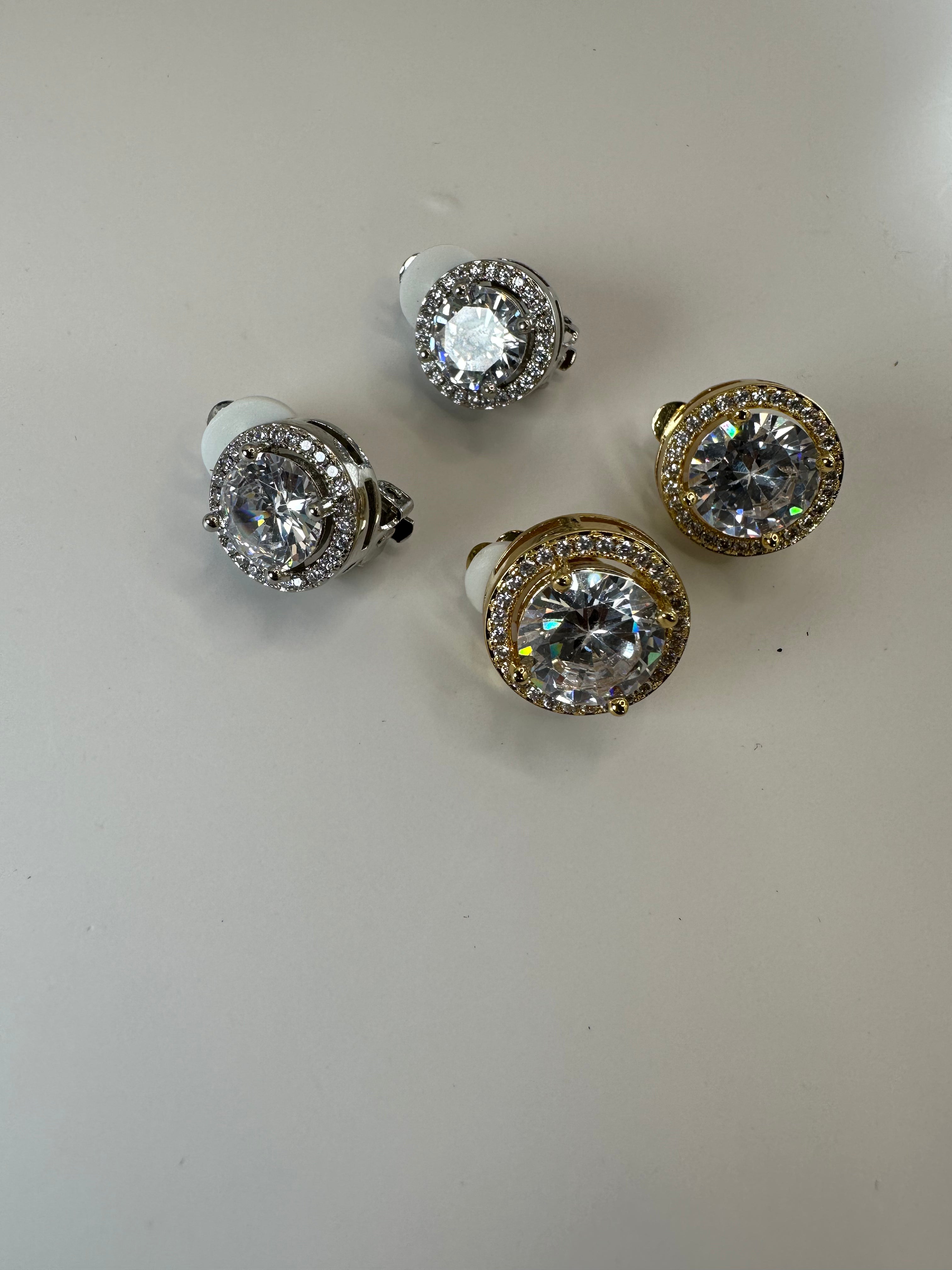 cubic zircon clip on earrings available in 14mm (large) and 12mm (small) size gold and silver colored