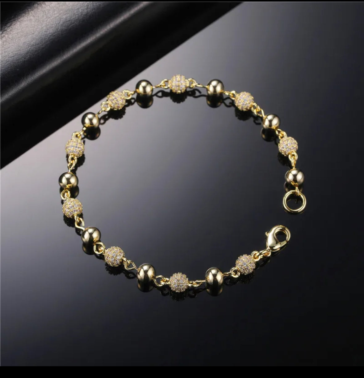 luxury unisex bead style bracelet cz filled available in gold and silver