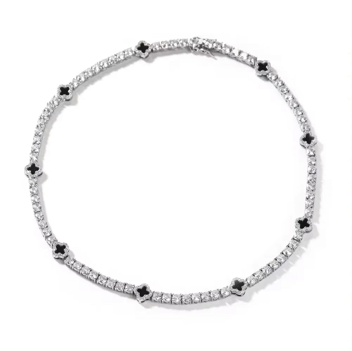 unisex cz filled silver plated tennis style clover filled necklace nice when paired with matching bracelet