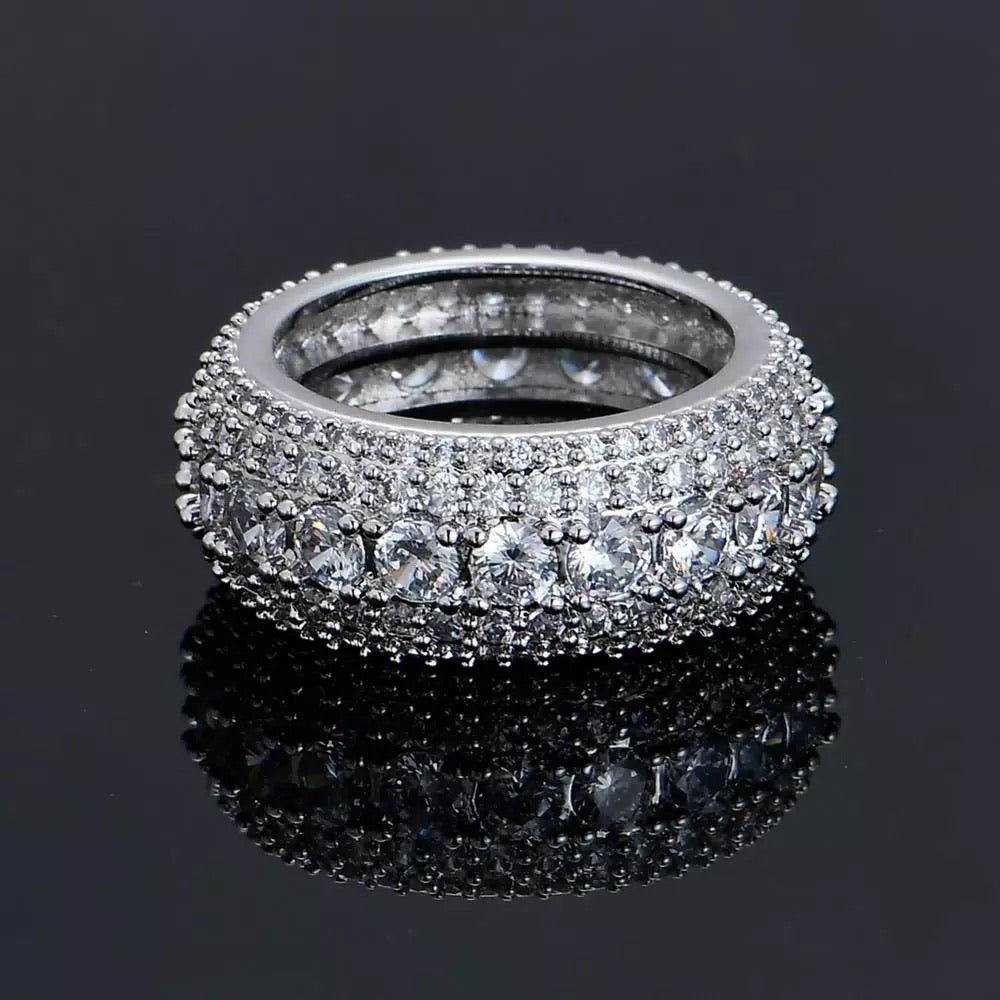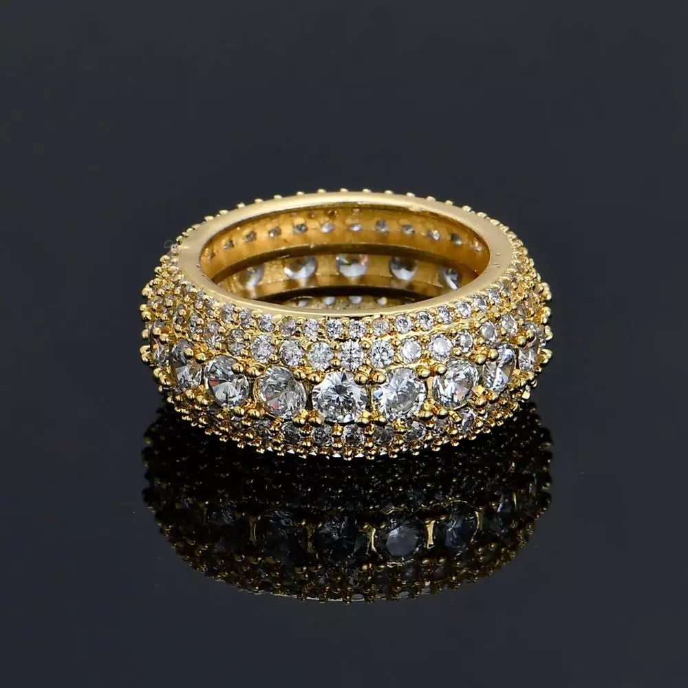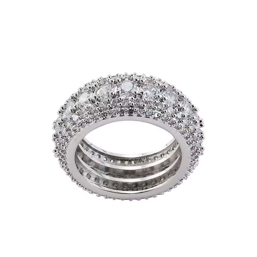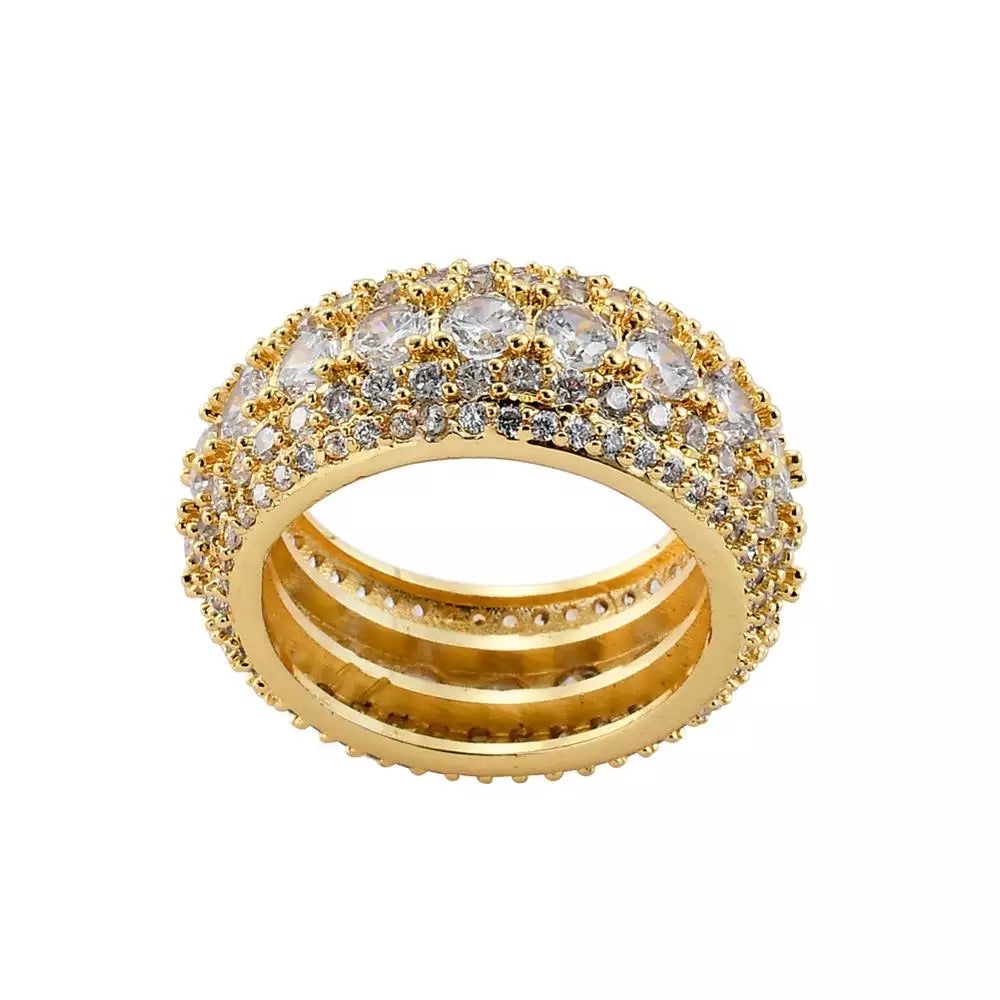 bold crushed out cz diamond ring available in gold and silver plating
