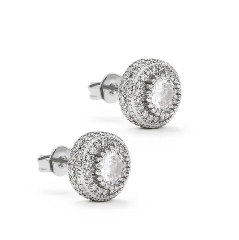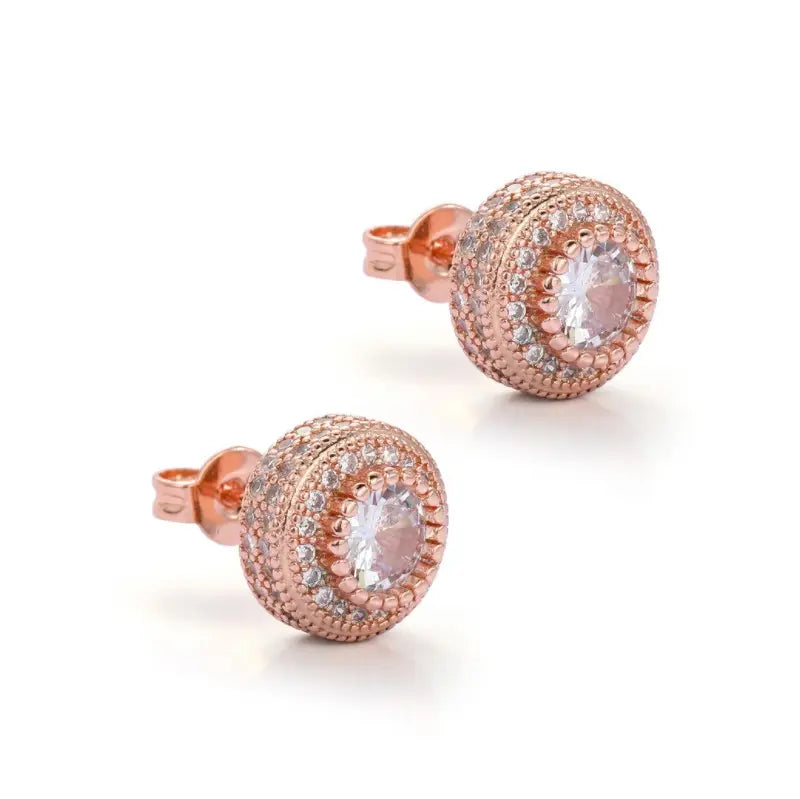 Unisex round shaped cubic zircon 8mm stud earrings available in gold, silver and rose gold plated