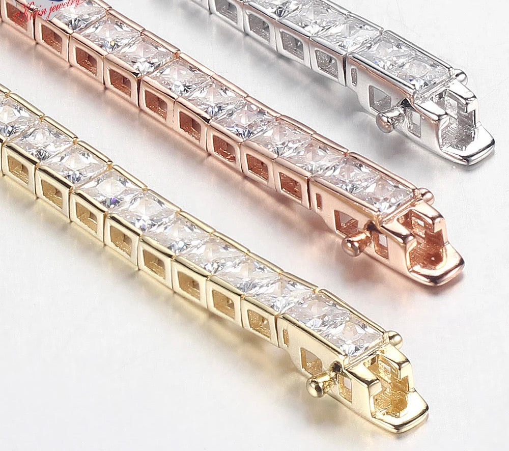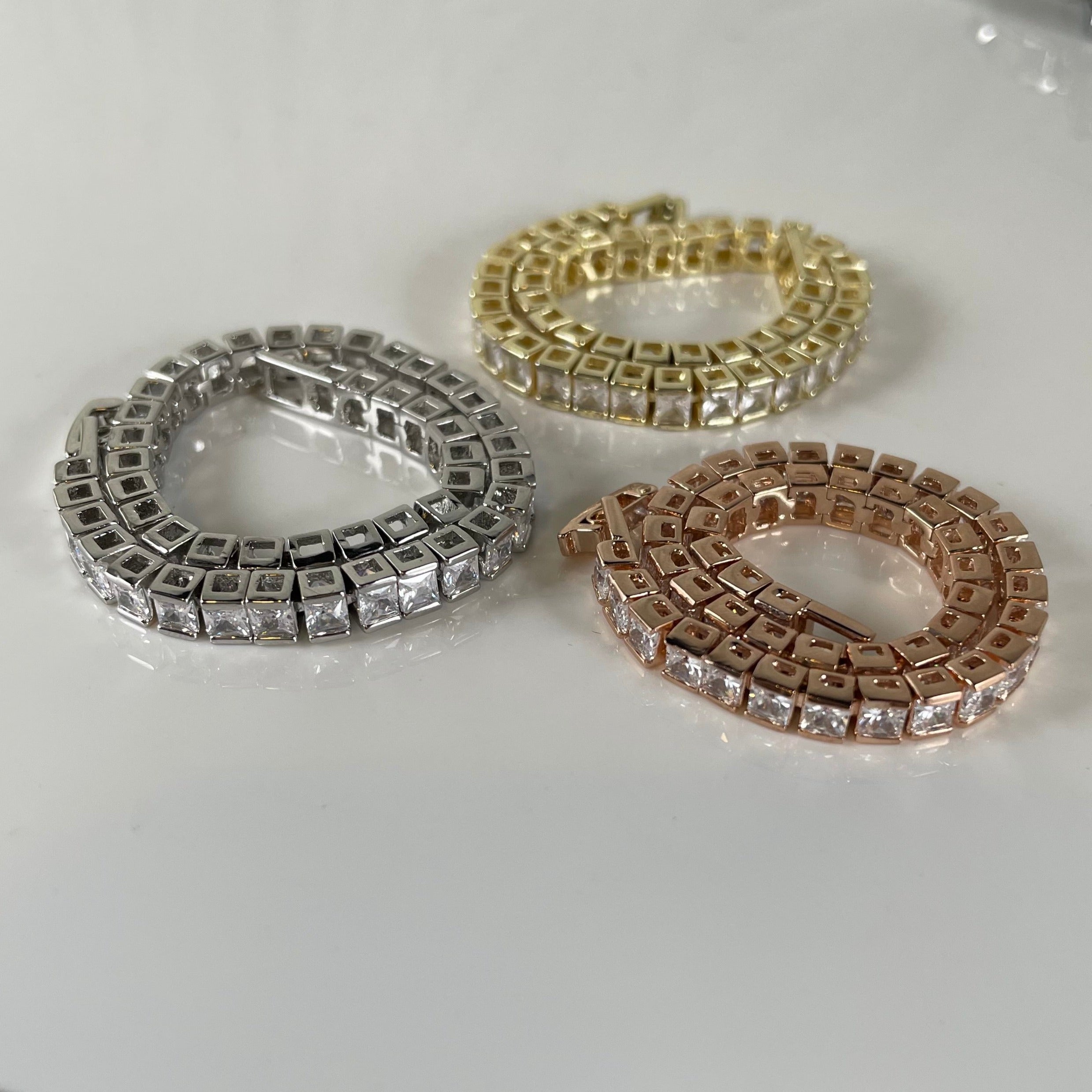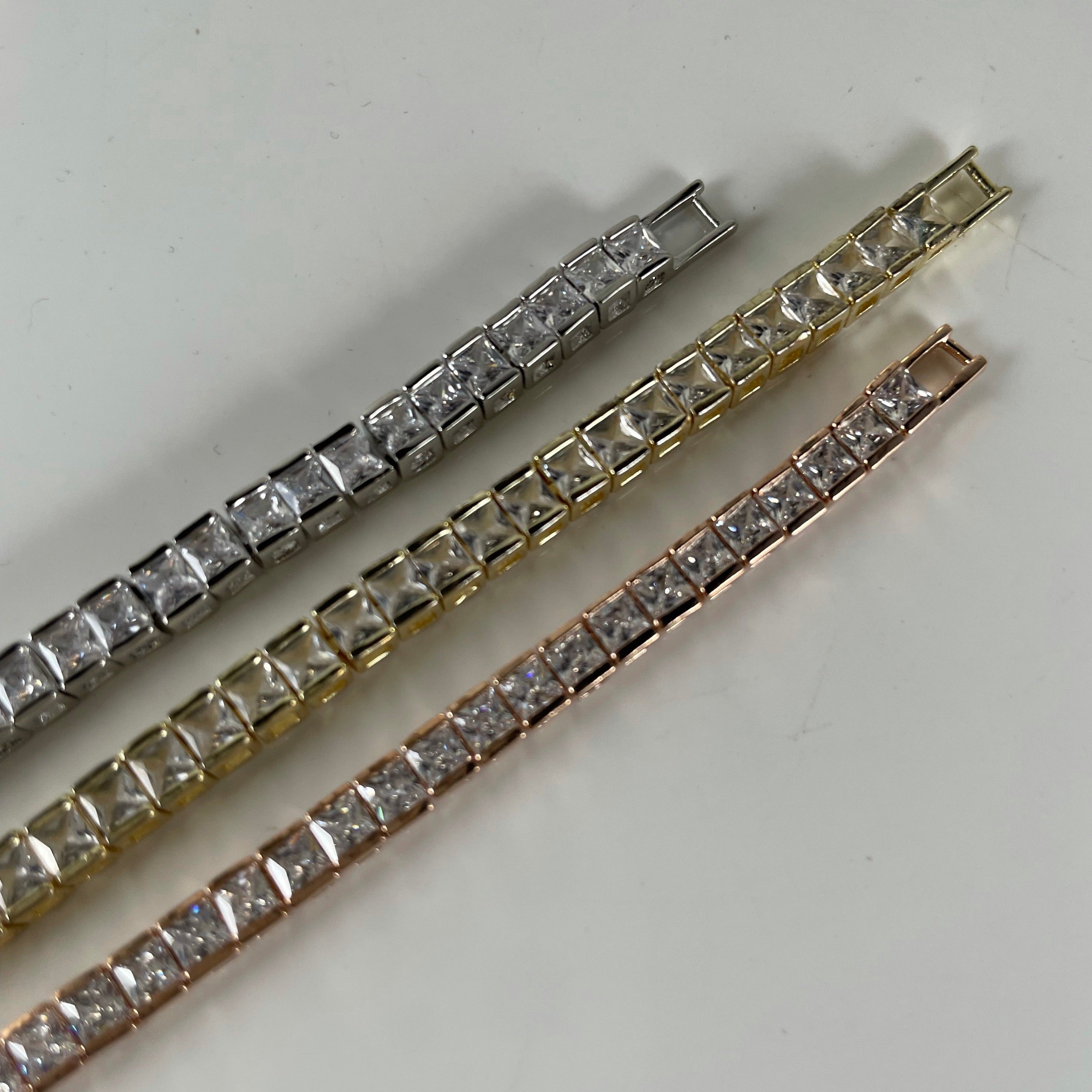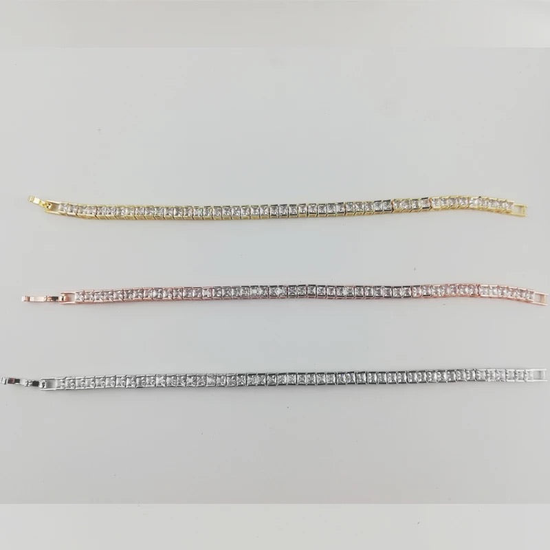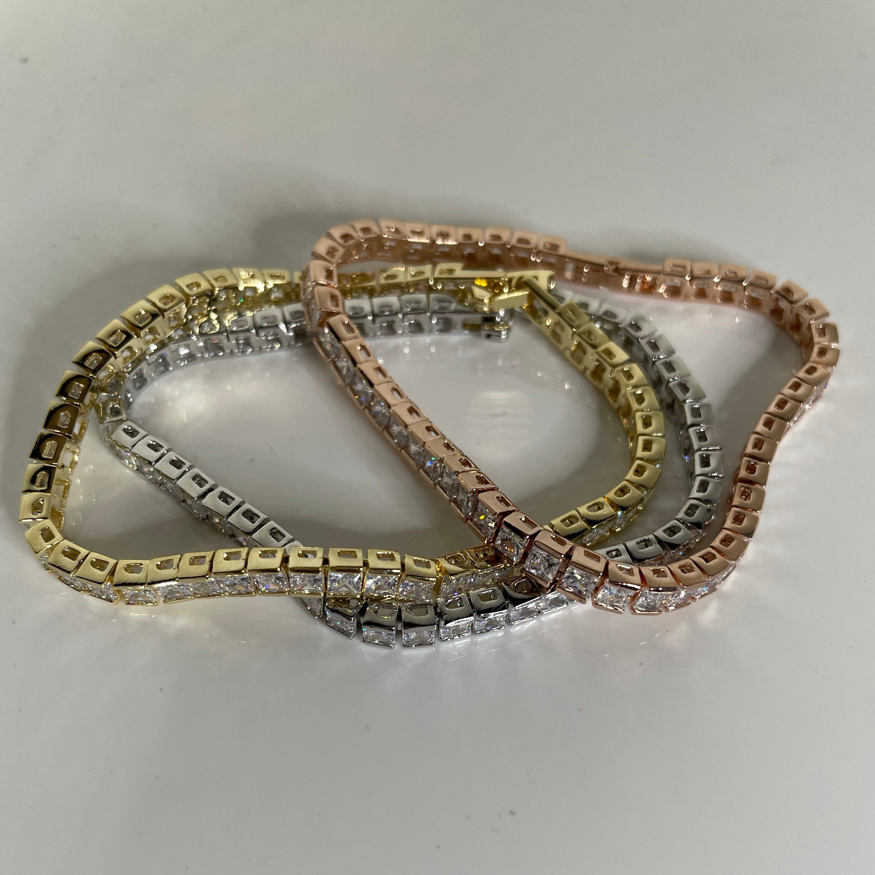 Unisex Baguette Tennis style bracelets available in gold, silver and rose gold available in 7.5 inches