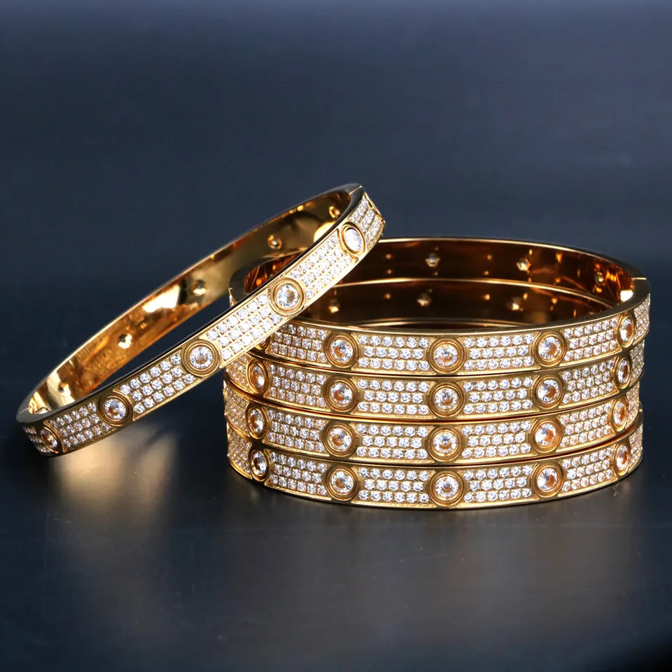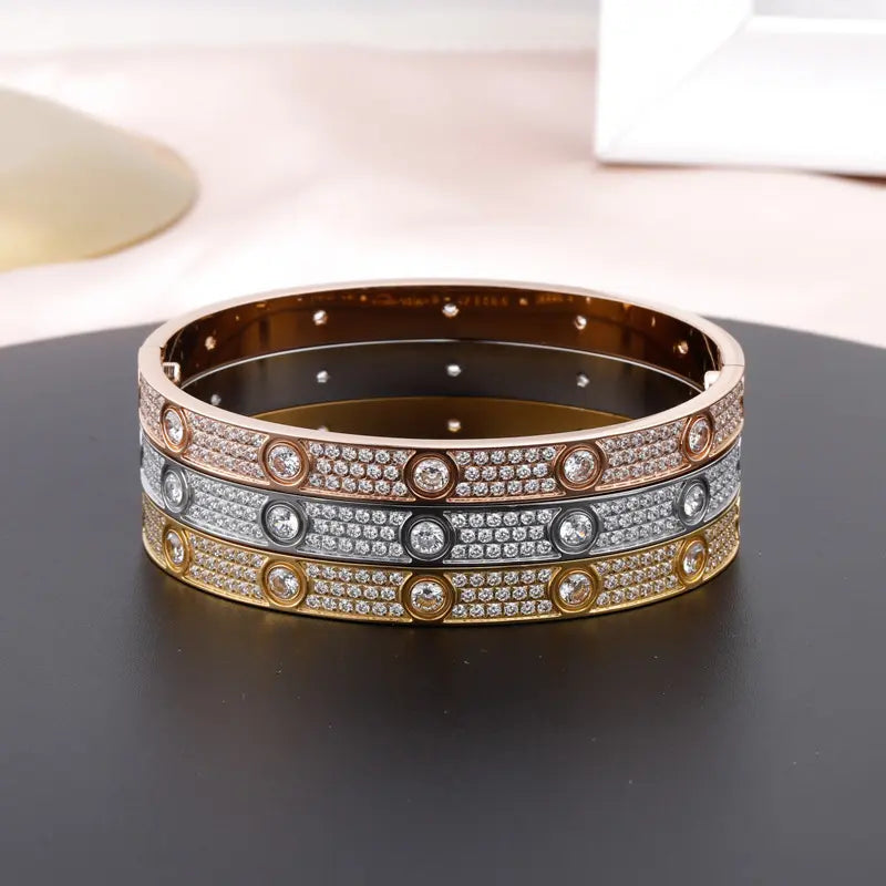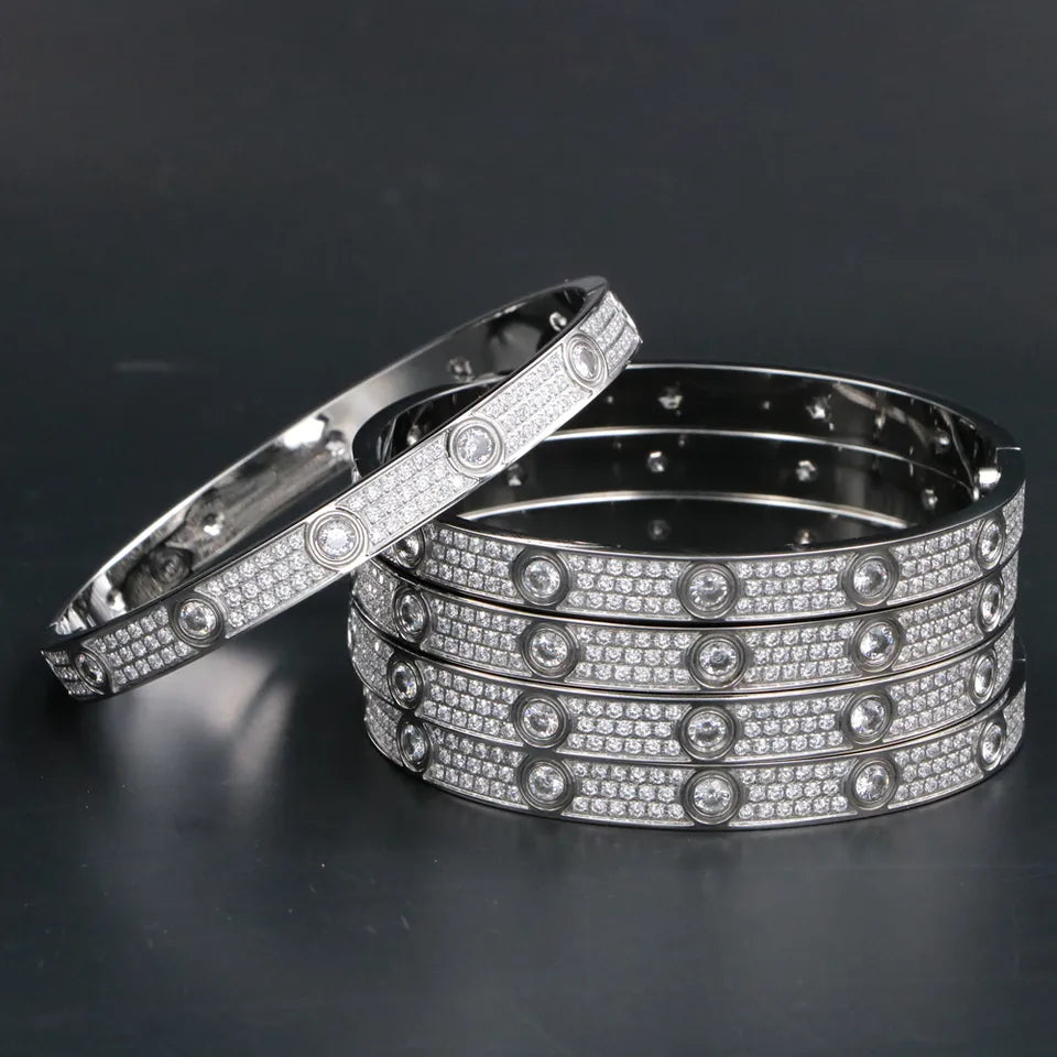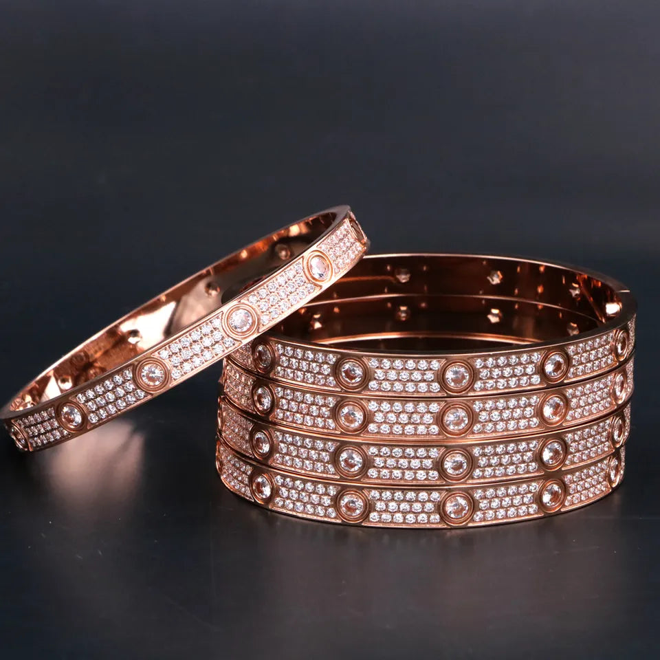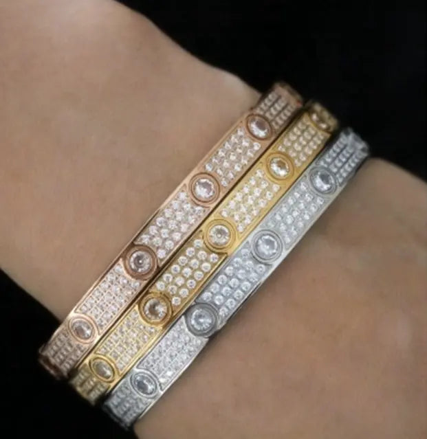 Single style bangle bracelet filled with cz stones available in gold, silver and rose gold plated comes with the infamous screwdriver each sold separately (most wear small or medium)