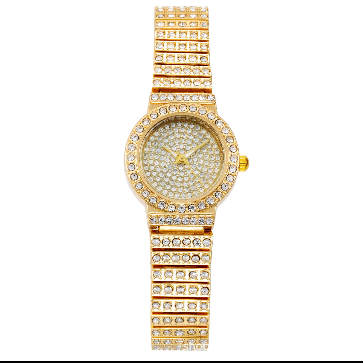 center circle cz face link watch available in two colors gold and silver
