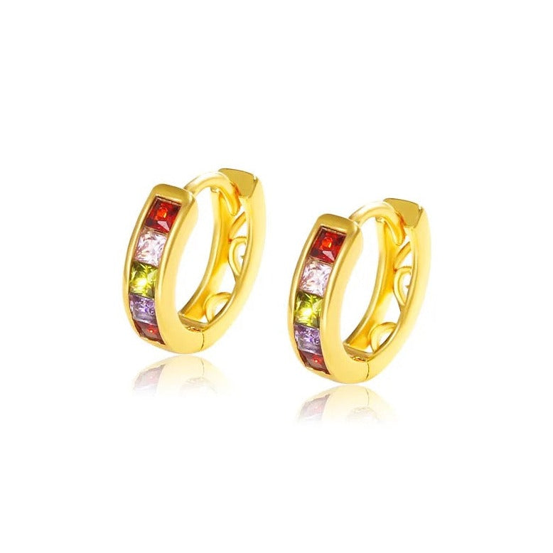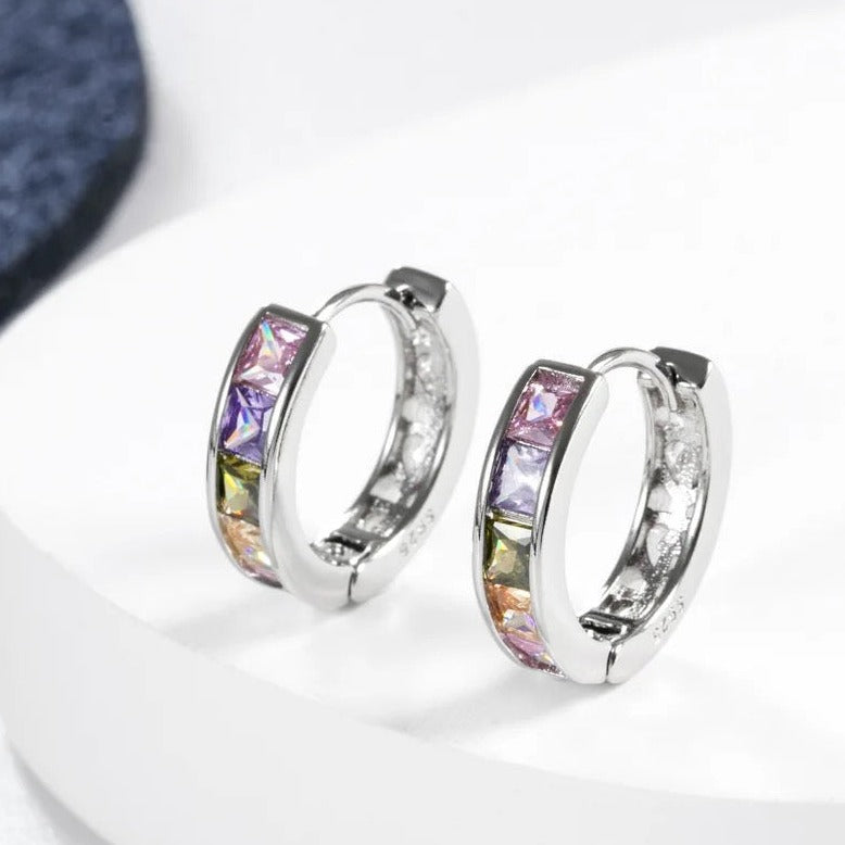 Sterling Silver based colorful cz stoned tiny 1/2in hoop earrings great for adults and kids