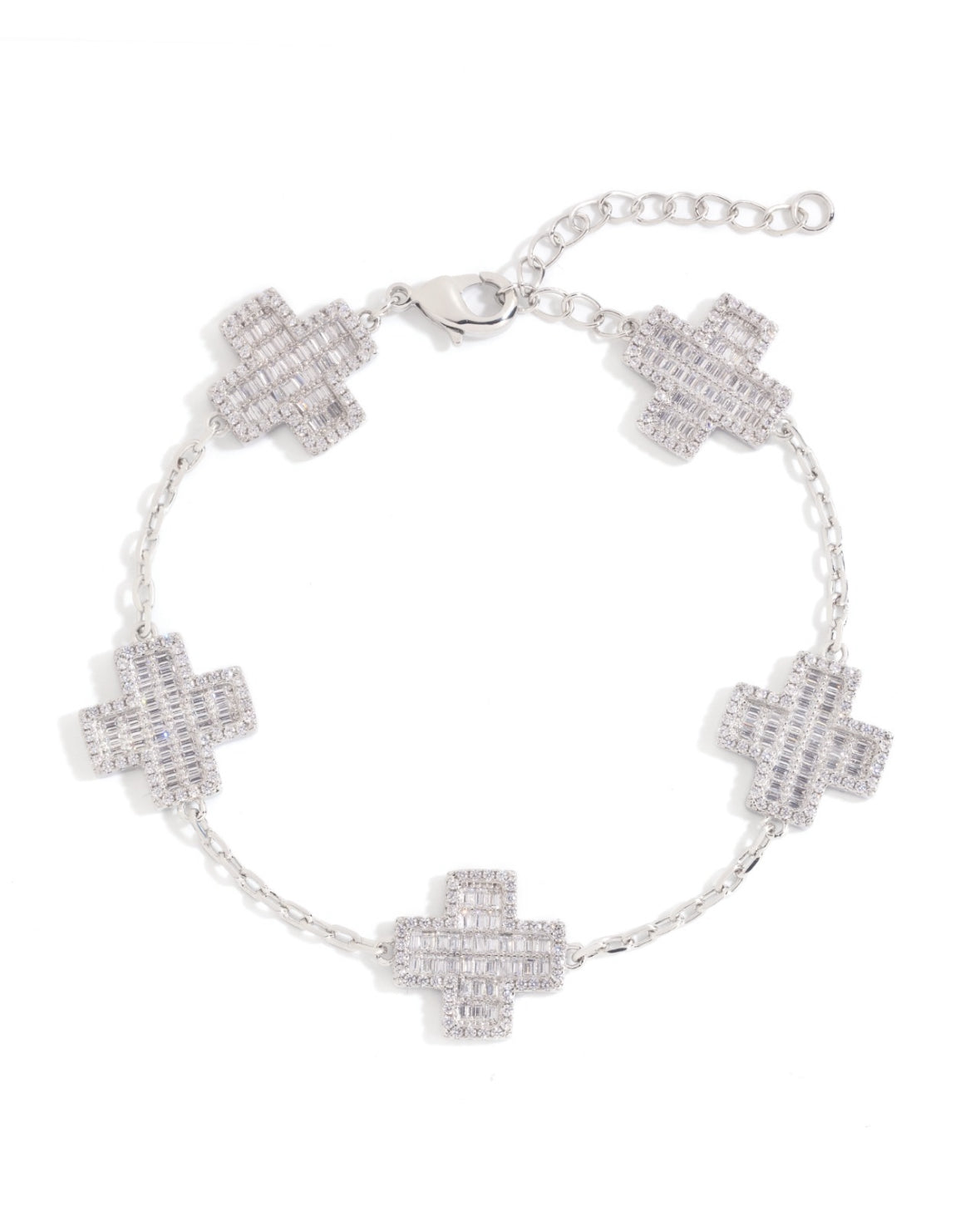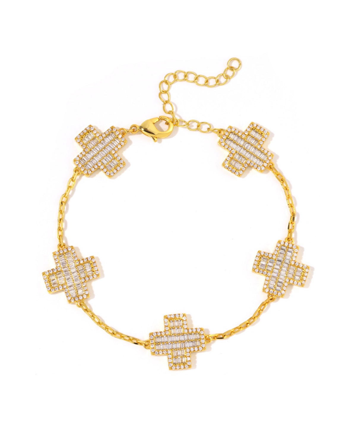 luxury starburst cross shaped cz filled plated bracelet available in gold and silver