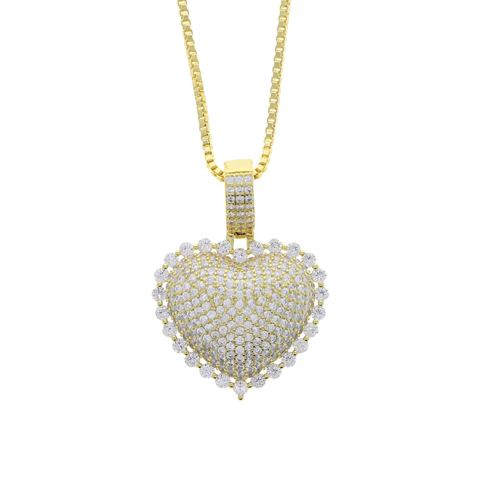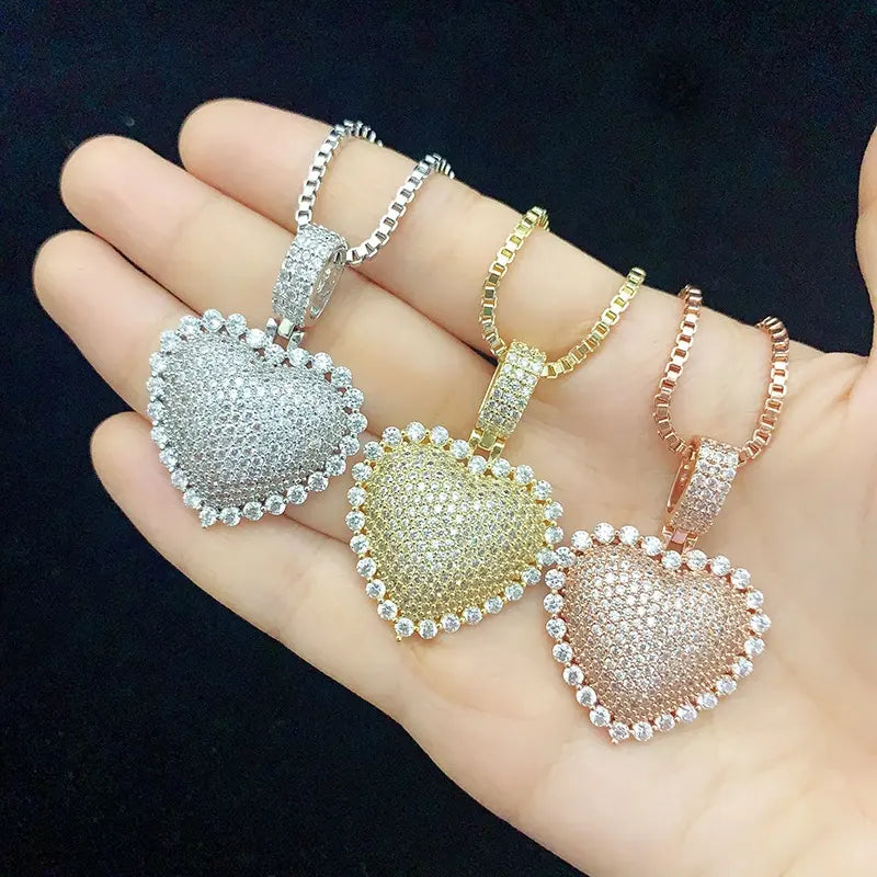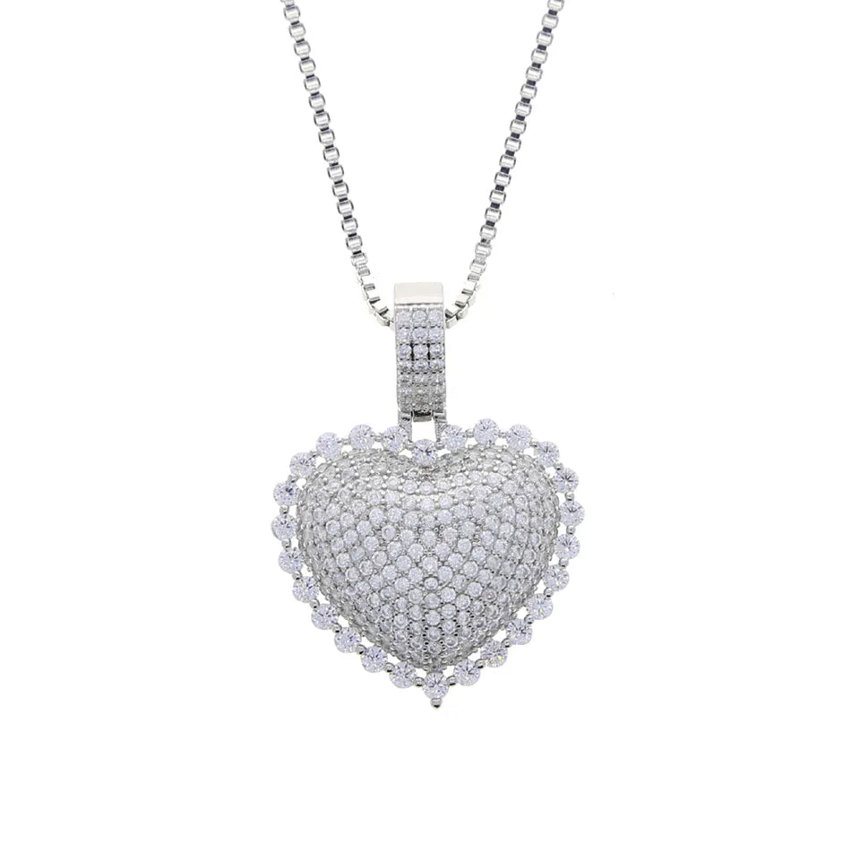 CZ diamond fill heart on a CZ diamond filled necklace available in gold, silver and rose gold plated (chain included)