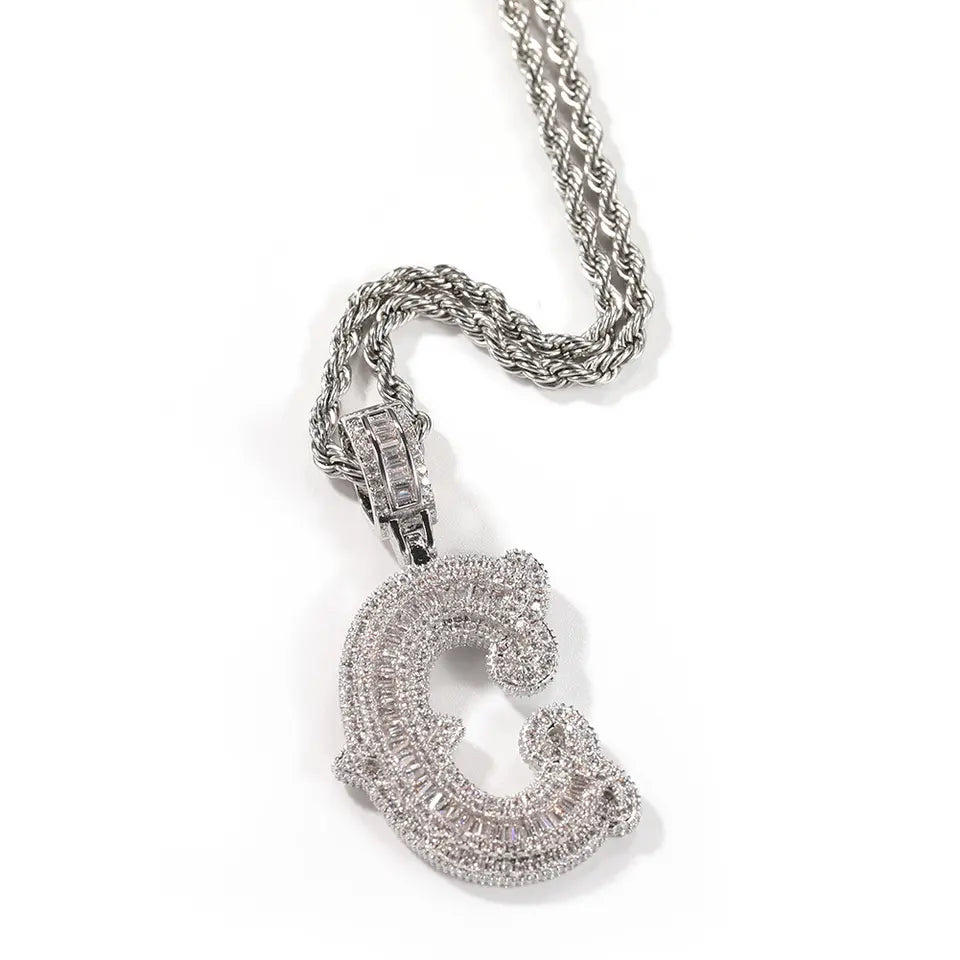 Old english style letters plated available in gold, silver and rose gold on rope chain