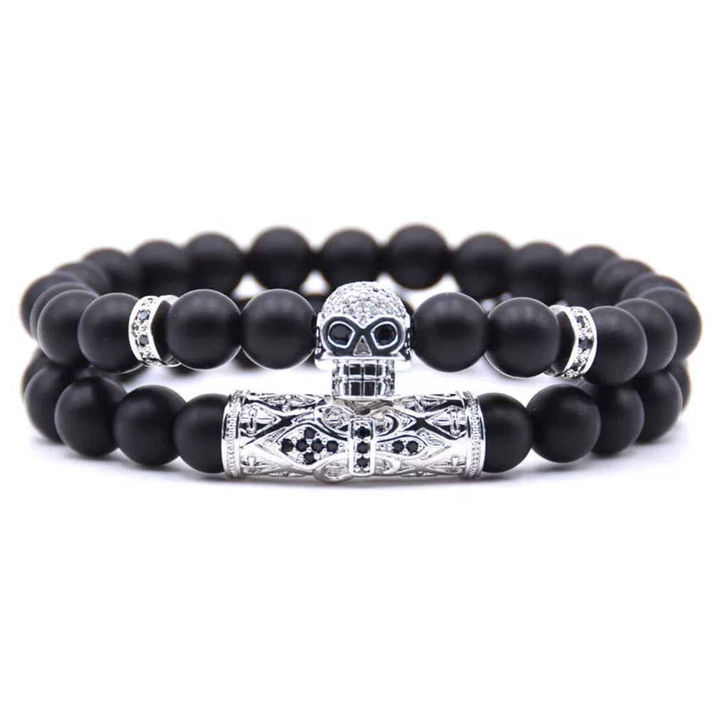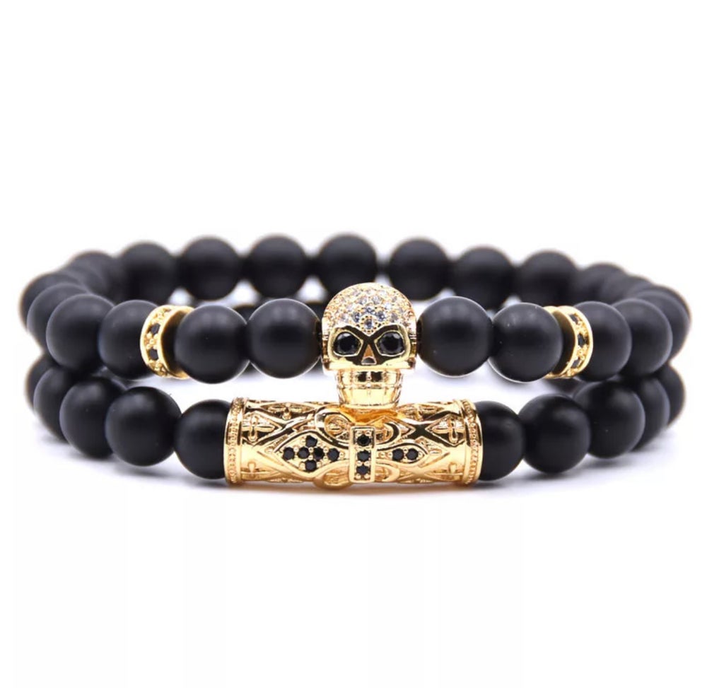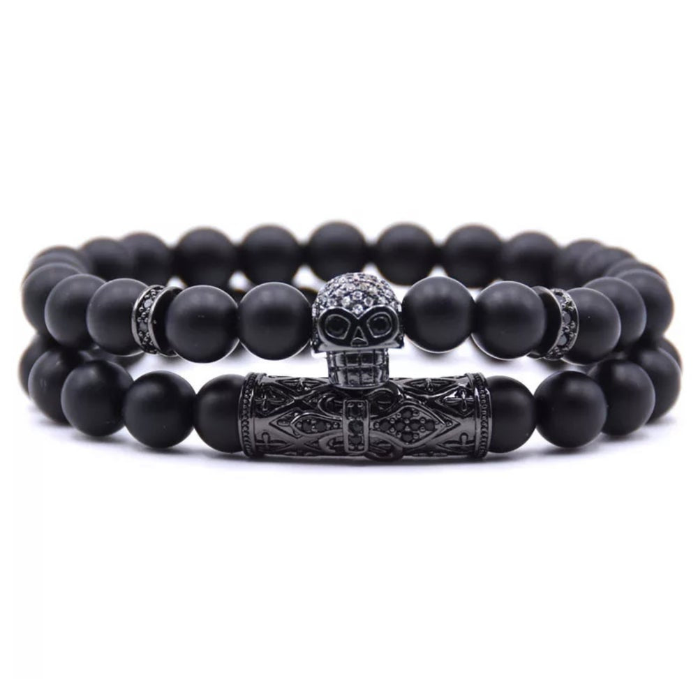 Black Beaded Double Set with Skull Head available in black, gold and silver