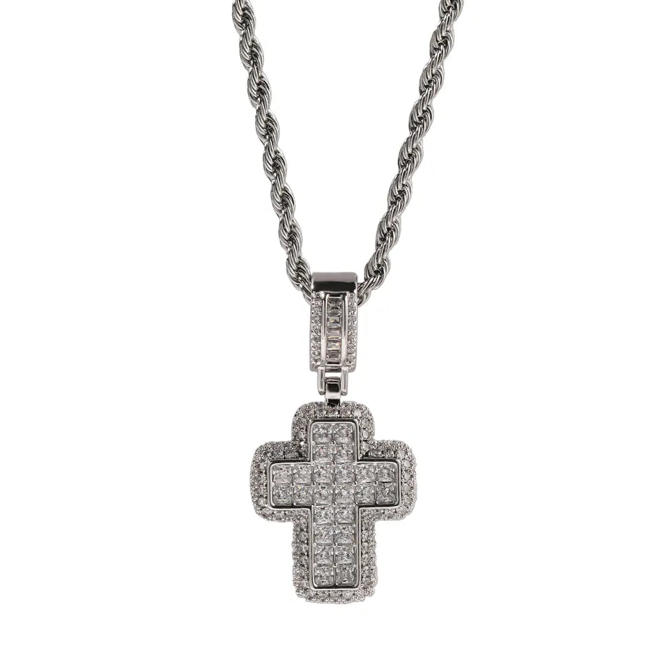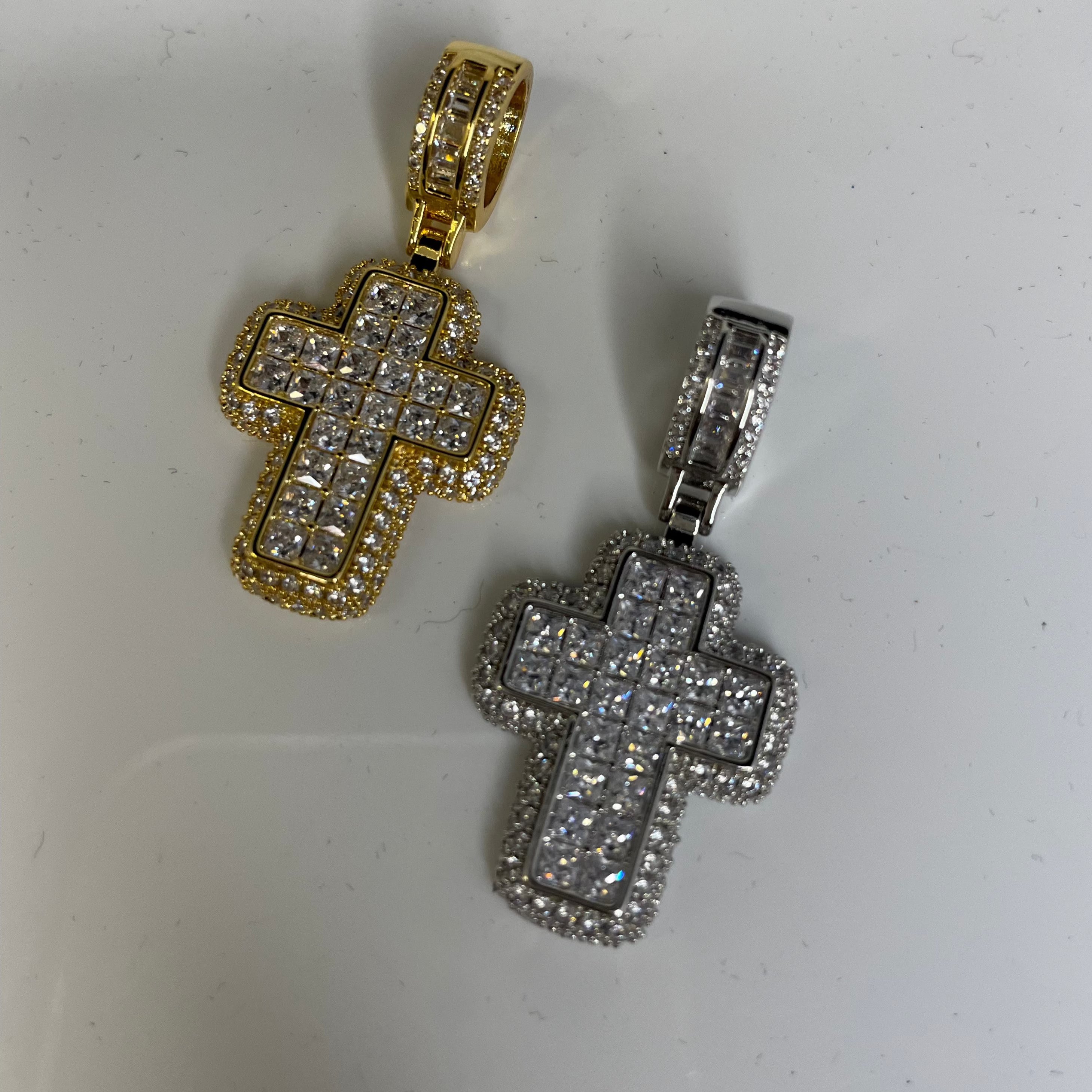 Unisex Cross Pendant CZ filled gold plated available in gold and silver with 18in rope chain