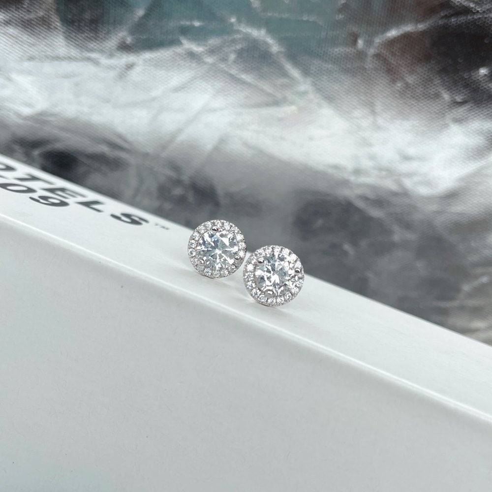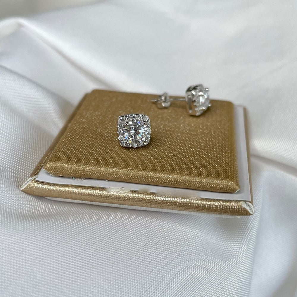 Luxury sterling silver cz filled stud earrings available in square and round shaped