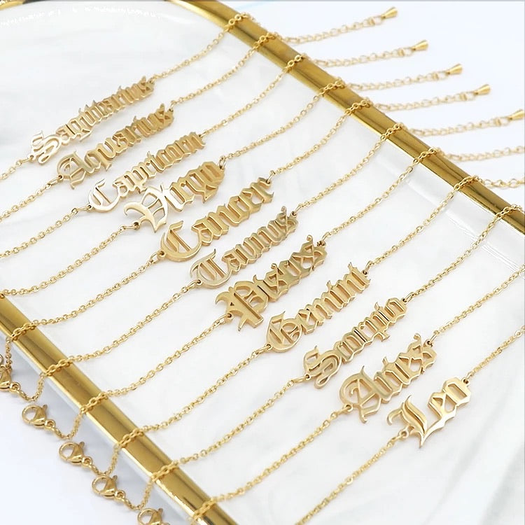 zodiac name plate signs anklets available in gold and silver plating matching necklace sold separately