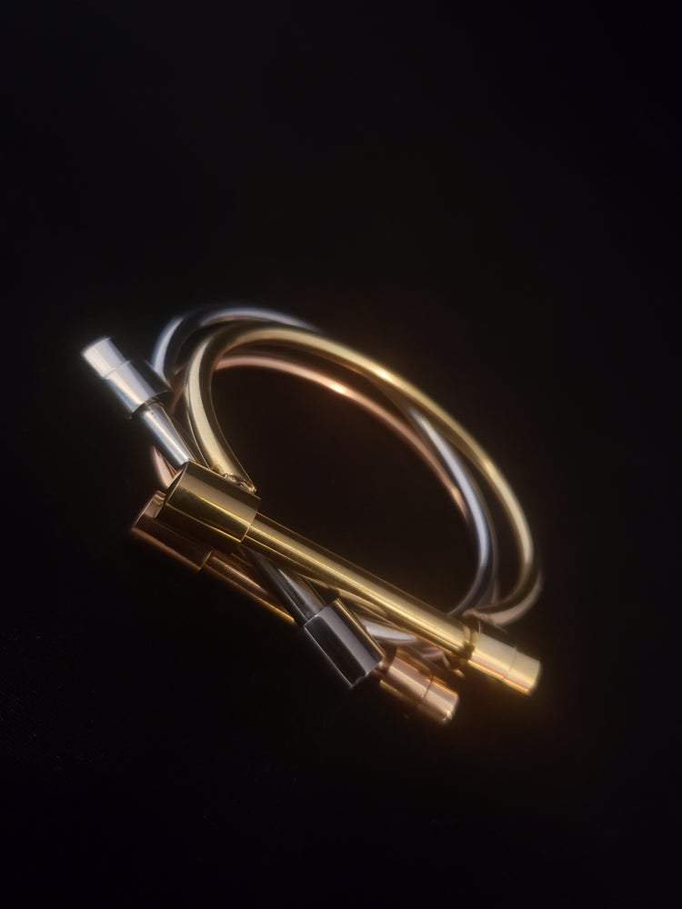 unisex Screw-in bangle bracelets available in black, gold, silver and rose gold